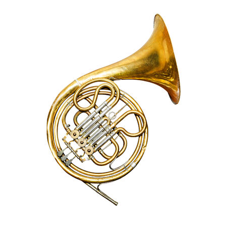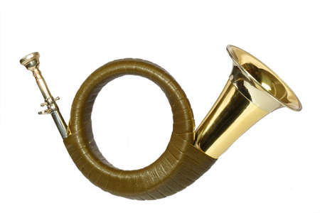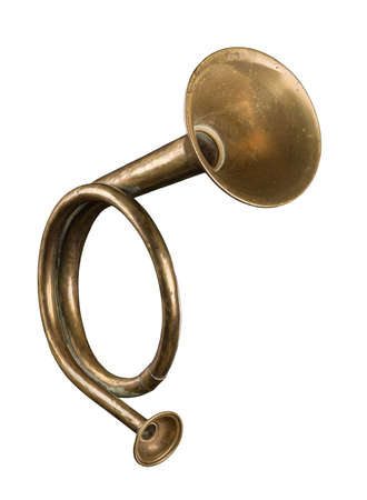 Vintage hunting horn, isolated on white background