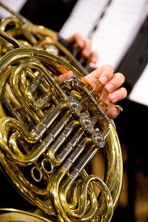 hands playing french horn detail
