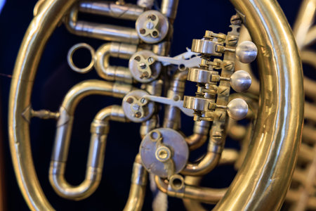 Shiny french horn close up no people interior design detail