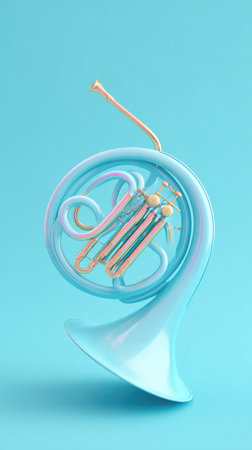 A beautifully rendered image of a French horn in a soft pastel blue color, perfect for artistic projects.