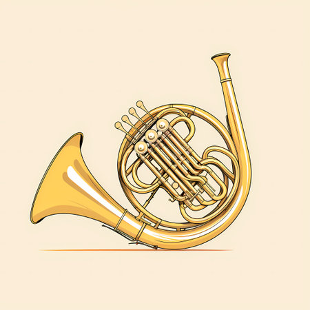 Vector illustration of a French horn on a beige background. EPS 10