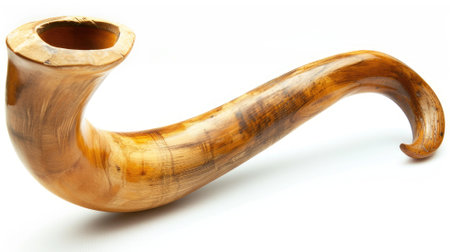 Symbolic Sound: Shofar, a traditional Jewish ram horn, isolated on a striking black background, evoking spiritual depth