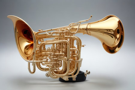 Musical instrument - a golden tuba on a gray background.