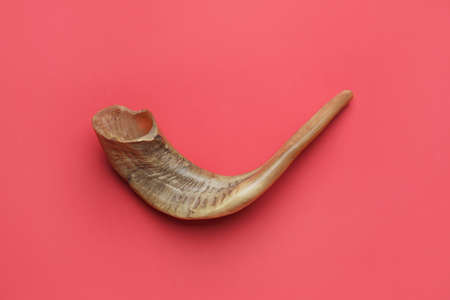 Shofar on color background. Rosh Hashanah (Jewish New Year) celebration