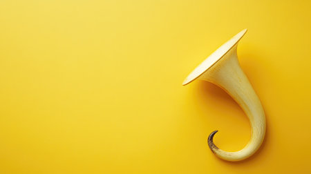 Artistic yellow background with unique, curved light wood horn