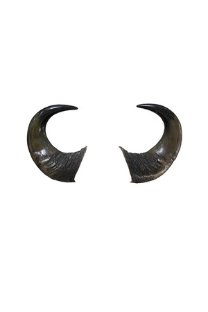 Bull horns isolated on a transparent or white background. Horn overlay for insertion. Design elements to insert into a design or project.
