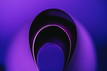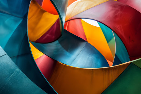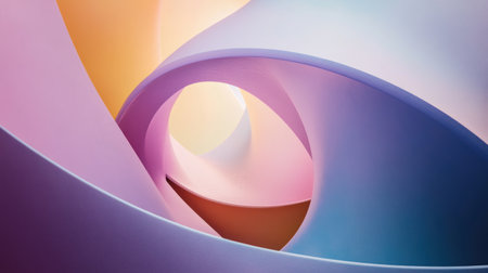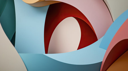 An artistic close-up of colorful abstract shapes created from layered paper. The smooth curves and varied colors create a dynamic visual experience.
