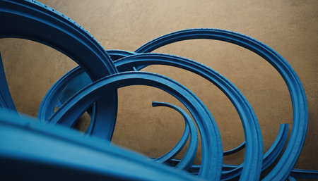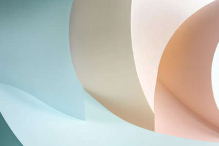 Curved layers of textured paper overlap elegantly, forming a captivating rhythmic pattern against a dark blue background that enhances depth and dimension.