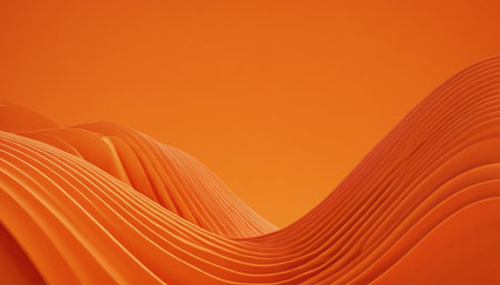 Abstract showing abstract wavy layers of blue and orange gradient with smooth curves and soft shadows creating...