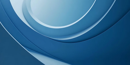 This image presents an abstract composition featuring layered curved shapes. The design utilizes a gradient that transitions from dark to light blue. The composition creates a sense of depth and dimension. Suitable for various applications, this image could be used for backgrounds or creative design projects.