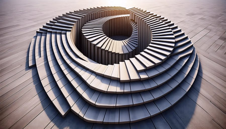 AI Generated. Abstract Concrete Structure with Swirling Curves and Contrasting Light and Shadows