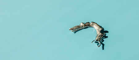 Upper human jaw without teeth model medical implant isolated on blue background. Healthy teeth, dental care and orthodontic concept.