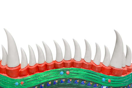 close-up tooth of naga statue in thai temple isolated on background ,clipping path included.