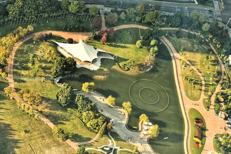 Aerial photography outdoor park square closeup