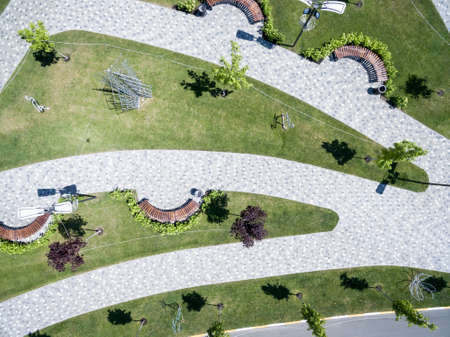 Top view of the park with paths top view
