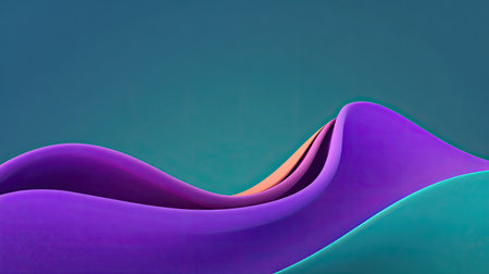 Colorful abstract waves in shades of purple and blue create a serene landscape under a gradient sky, perfect for modern art and design projects with a dynamic touch.