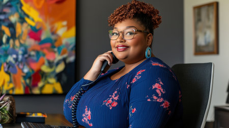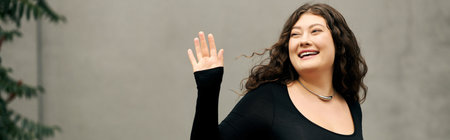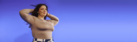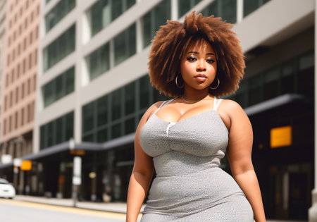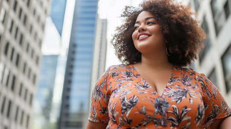 A stunning plus size woman showcases confidence while posing with elegance and style.