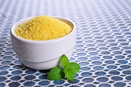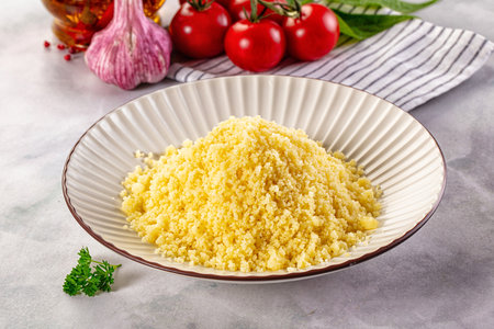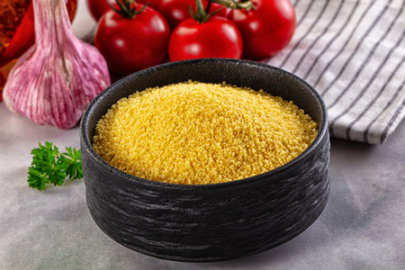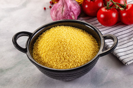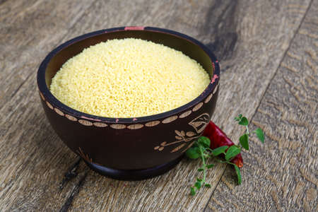 Vegan cuisine - raw dry couscous in the bowl