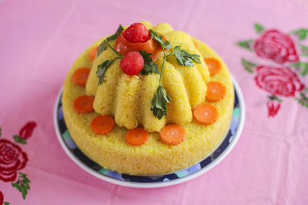 Malaysian dish Yellow Glutinous Rice or locally known as Pulut Kuning for wedding ceremony