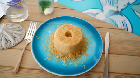 Traditional Brazilian couscous (cuscus / couscous). Tropical food. The Brazilian Couscous from the Northeast Region also known as Corn Couscous is a nutritious, cheap and a really simple recipe to make.