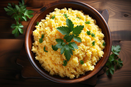 Brazilian gourmet delight: kuskus in a wooden bowl.