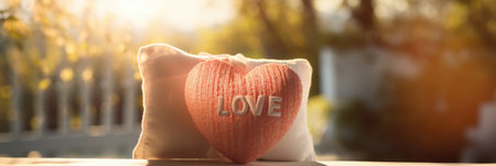 pillow, with view of sunrise in the morning sky, created with generative ai