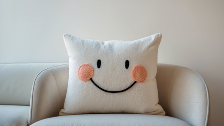 AI Generated. there is a pillow with a smiling face on it sitting on a couch