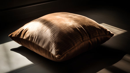 A cozy decorative pillow rests on a wooden floor, blending comfort and style. Ideal for showcasing home decor, lifestyle themes, and serene interior settings.