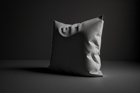 Blank square pillow mockup, side view, in white and black. Empty, solitary, cloth pillowcase used for sleeping. Pillows with cloth covers and clear stuffing for a relaxing template. Generative AI