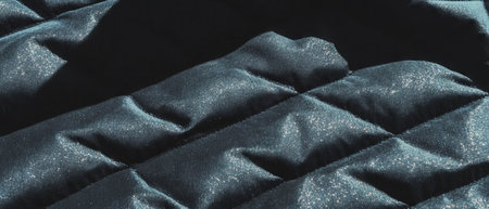 Geometric quilted fabric with padded texture and shimmering contrast patterns