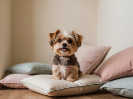 AI Generated. Cute little dog posing happily in a cozy space