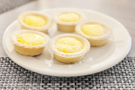 dessert egg tart or Portugal egg tart sweet custard cream on tray