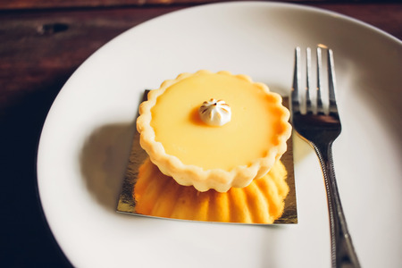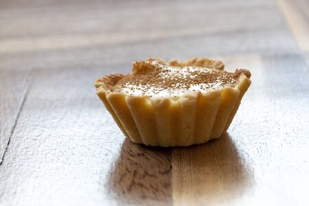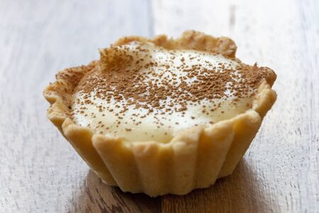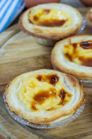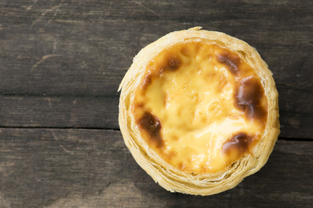 Egg tart on the wooden background.