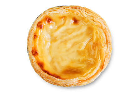 Portuguese custard pies, Pastel de Nata or Pastel de Belem on a white isolated background. Traditional portuguese pastry
