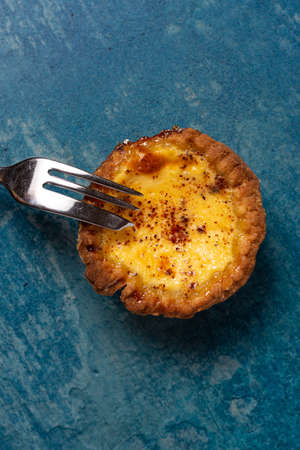 Egg tart, traditional Portuguese dessert, pastel de nata. Pasteis de Belem is a Portuguese egg custard tart pastry dusted with cinnamon.
