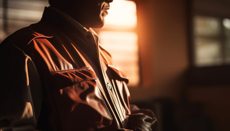 Confident businessman in casual clothing enjoys sunset outdoors with elegance generated by artificial intelligence