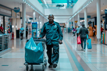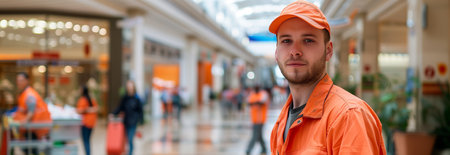 Caucasian male cleaning worker Working in a department store.