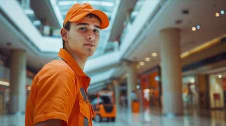 Security guard professional safety patrol man police employee mall safe business protect serve confident authority public space secure guarding agent staff shop convenience store grocery