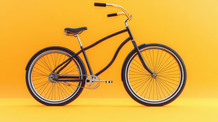 A stylish black bicycle with chrome accents stands against a vibrant yellow background, perfect for representing leisure, transportation, and modern lifestyle choices.