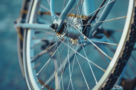 Forward wheel of the bicycle close up with bokeh