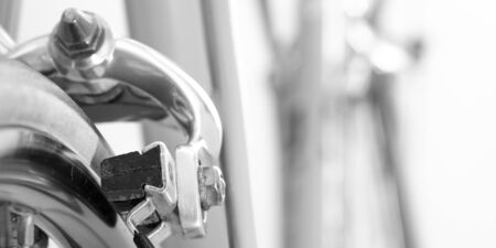 Biycicle and brake rubber at a tire as close-up