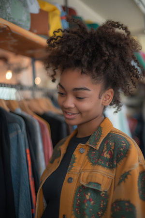 person, browsing through vintage fashion store, looking for unique pieces, created with generative ai
