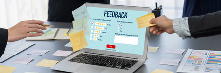 Customer or business team feedback system highlighting comments, opinions, evaluations, reviews, and suggestions from users to improve services, communication, and product quality idea insight