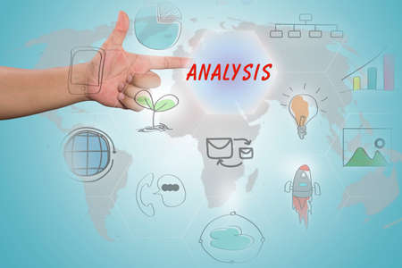pressing touch screen interface and select ANALYSIS, business concept , business idea