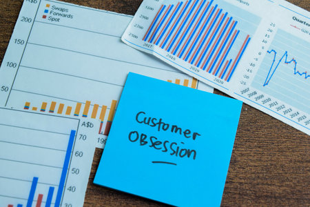 Concept of Customer Obsession write on sticky notes isolated on Wooden Table.