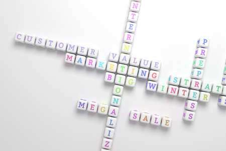 Customer Value, marketing keyword crossword. For web page or design, as graphic resource, texture or background. 3D rendering.