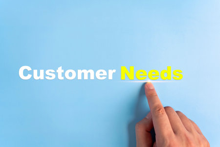 Customers needs concept. Hand pointing letter text in word need.