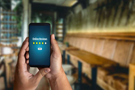 User give rating to service experience on online application, Customer review satisfaction feedback survey concept, Customer can evaluate quality of service leading to reputation ranking of business.