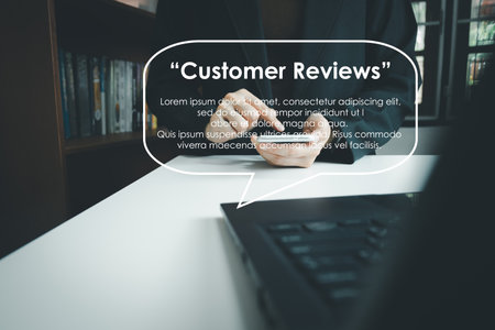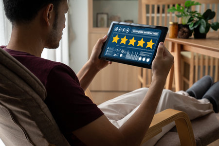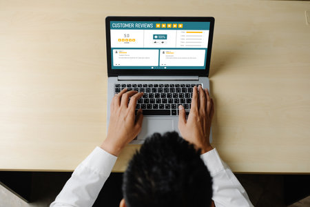Customer service and Satisfaction ,Business people man giving Feedback via the Internet. Positive Review. Client Satisfaction Surveys