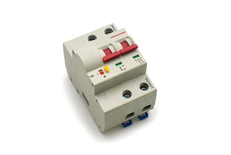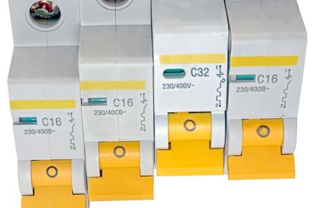 Automatic circuit breakers, Electrical equipment, protection and control on white background
